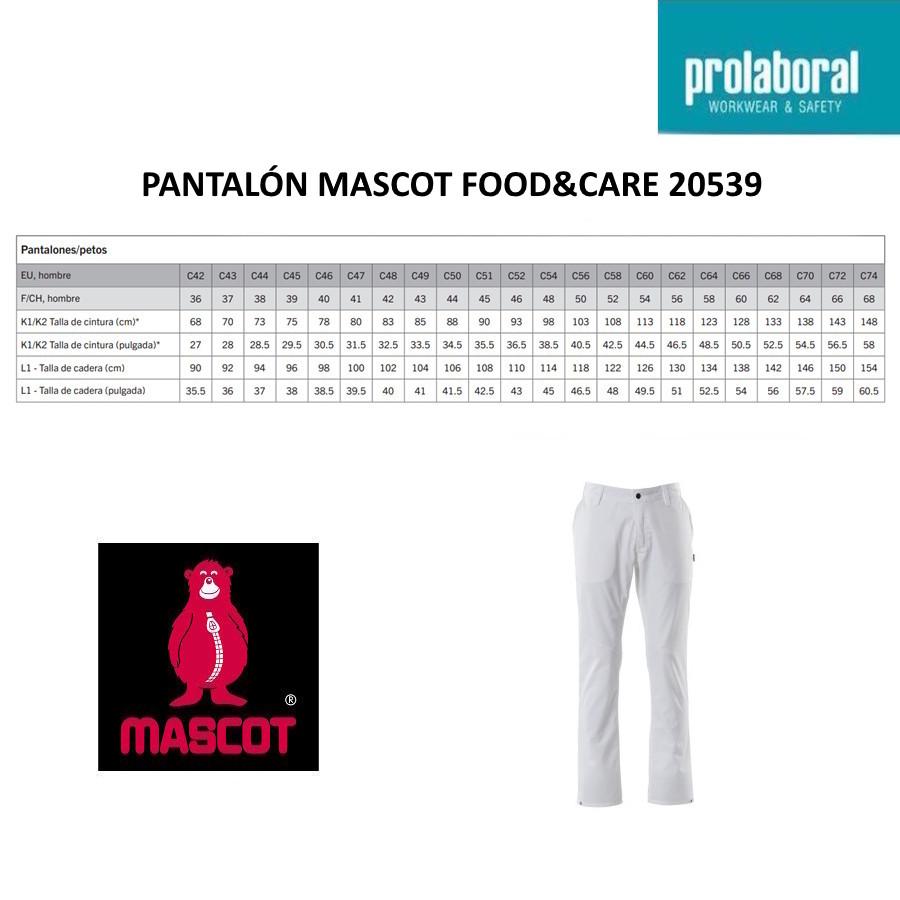 Los productos de Mascot utilizan un sistema de tallas propio que se expresan con códigos como C42, C50, C58.
