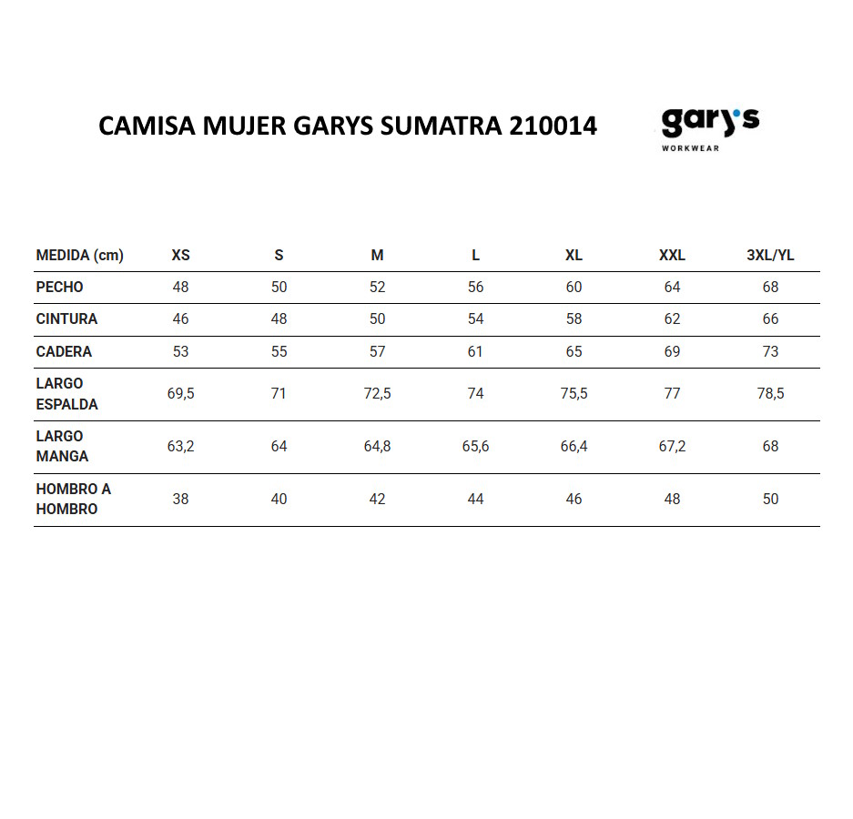 - Talla: XS, S, M, L, XL, XXL, 3XL.