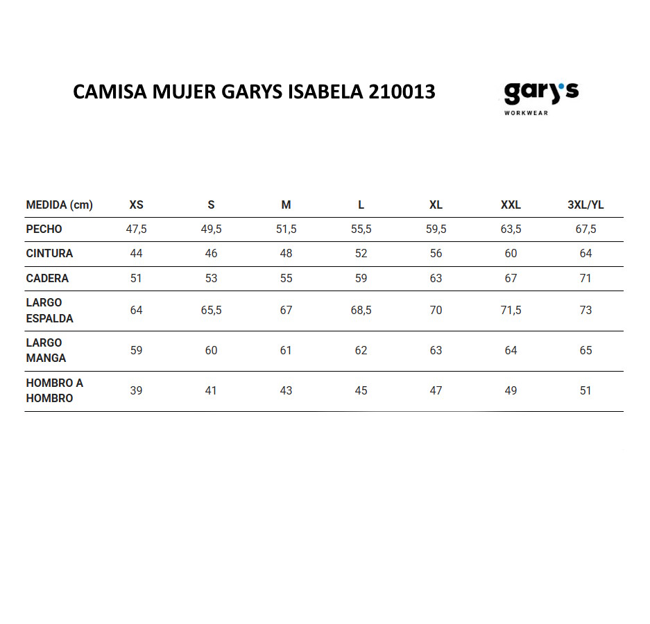 - Talla: XS, M, L, XL, XXL, 3XL.