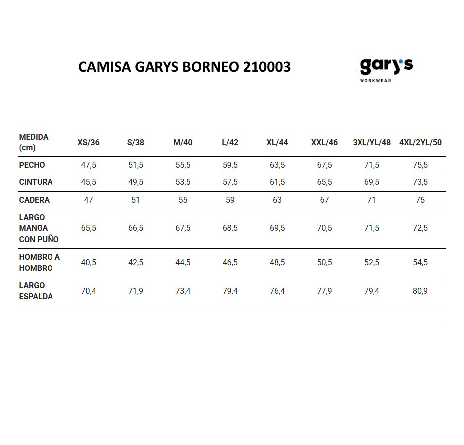 - Talla: S, M, L, XL, XXL, 3XL, 4XL.