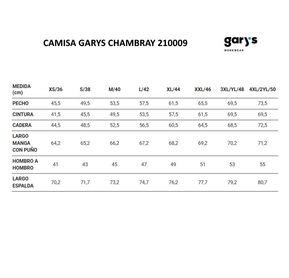 - Talla: S, M, L, XL, XXL, 3XL, 4XL.