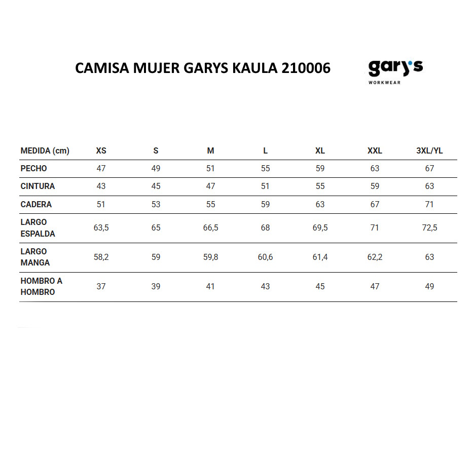 - Talla: XS, S, M, L, XL, XXL, 3XL.