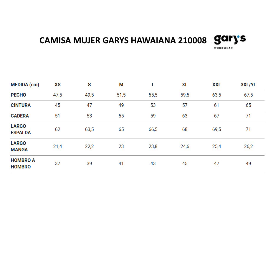 - Talla: XS, S, M, L, XL, XXL, 3XL.