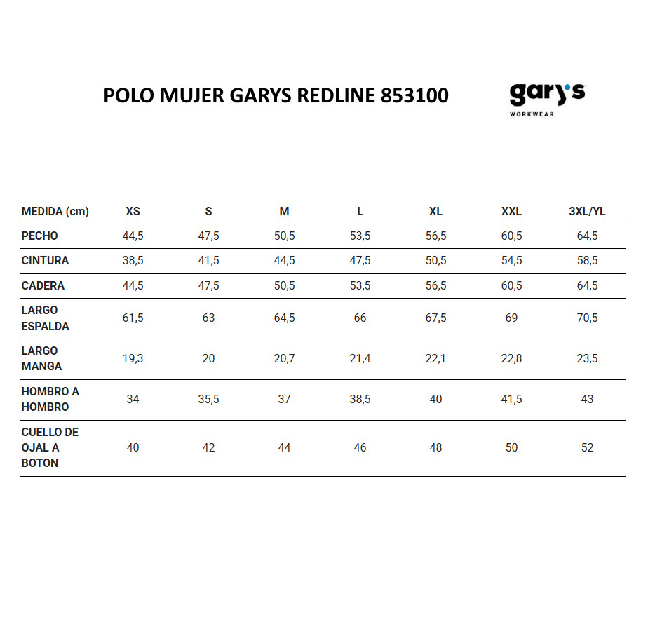 - Talla: XS, S, M, L, XL, XXL, 3XL.