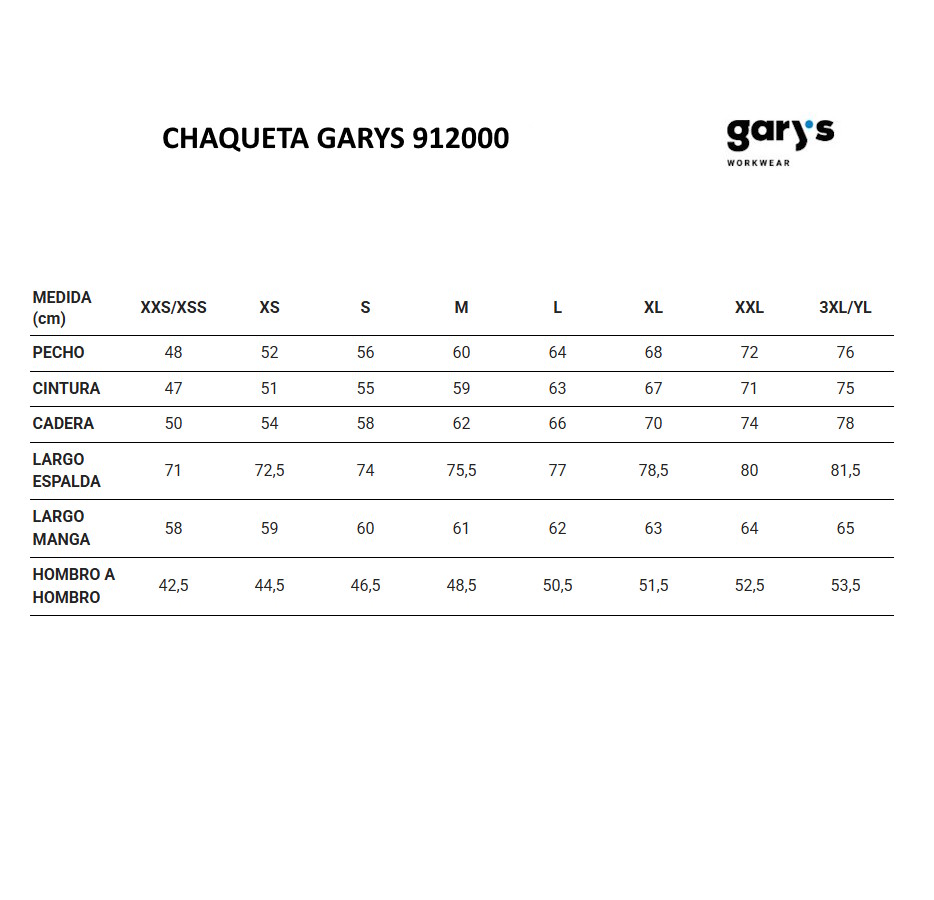 - Talla: XS, S, M, L, XL, XXL, 3XL.