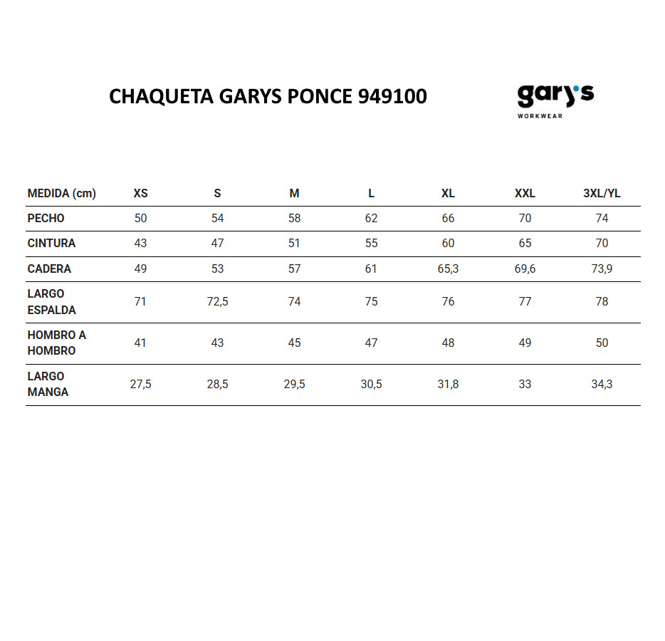 - Talla: XS, S, M, L, XL, XXL, 3XL.