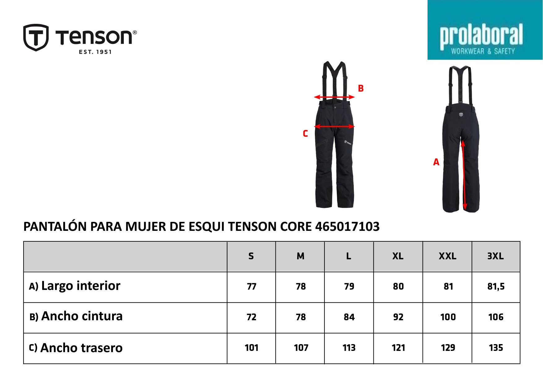 - Aislamiento de poliéster Air-Push de 80 gr, forro de poliéster teñido electrónico, cremallera bloqueable y cintura ajustable.