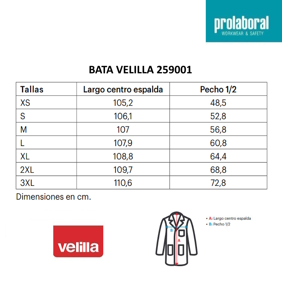 Disponible en tres colores distintos, la bata Velilla 259001 se adapta a las preferencias y normativas de diferentes entornos laborales, manteniendo siempre una imagen uniforme y profesional. Las tallas van desde XS hasta 3XL, asegurando una amplia variedad de opciones para ajustarse a diferentes morfologías y garantizar el máximo confort. Esta bata es una elección fiable y versátil para quienes buscan calidad, estilo y practicidad en su indumentaria laboral.