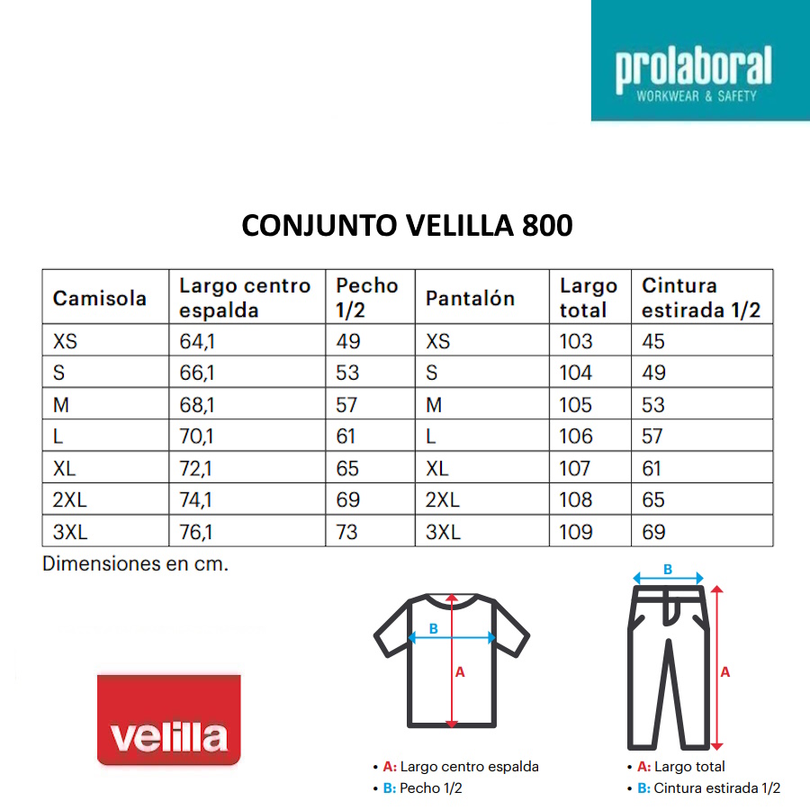El pijama Velilla 800 es perfecto para el uso diario. Cuenta con materiales resistentes, un pantalón con goma muy cómodo, y una camisola con bolsillos para tener a manos los utensilios necesarios en el trabajo. Además, puedes elegir entre 3 colores diferentes y varias tallas.