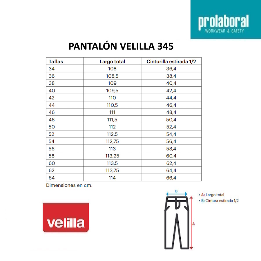 En cuanto a la capacidad de almacenamiento, el pantalón Velilla 345 cuenta con seis bolsillos: dos bolsillos franceses en la parte delantera para tener acceso rápido a tus objetos personales, dos bolsillos de parche con fuelle central, tapeta y cierre de velcro para mayor seguridad, y dos bolsillos traseros con fuelle, tapeta y cierre de velcro. Disponible en 13 colores diferentes, podrás encontrar el tono que mejor se adapte a tus gustos y necesidades. Además, este pantalón está disponible en tallas que van desde la 34 hasta la 60, asegurando que encuentres la talla perfecta para ti.