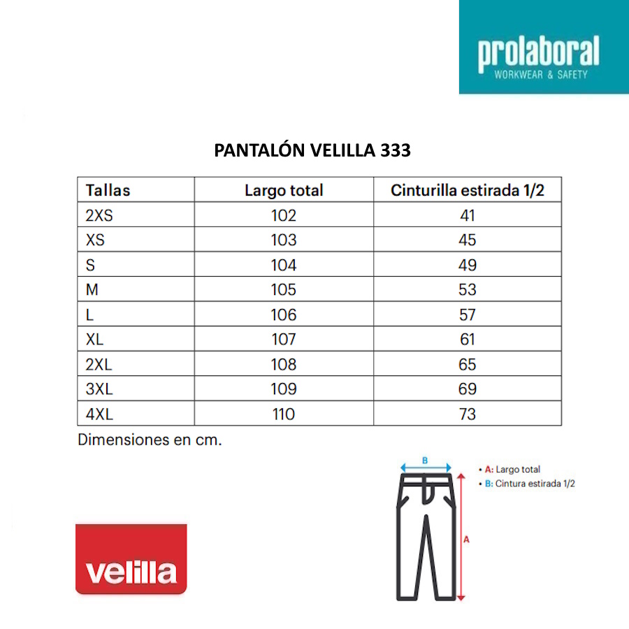 - Pantalón para sanitarios Velilla 333.