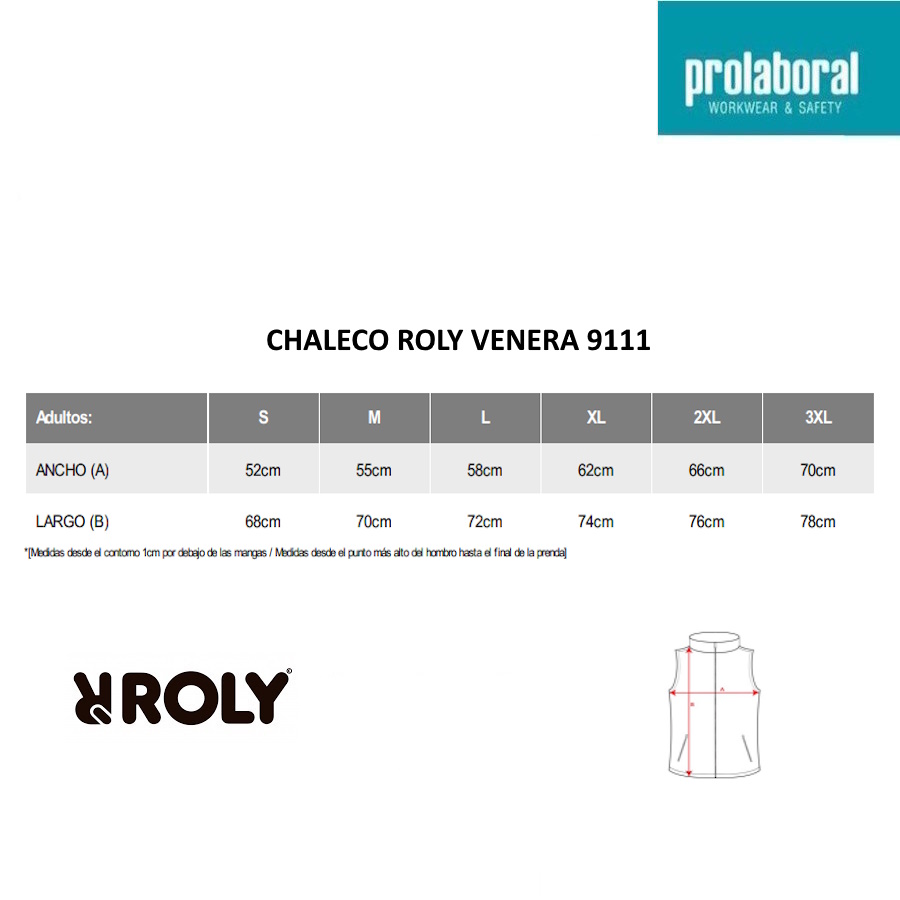 El chaleco Roly Venera cuenta con una cremallera central con tirador para un fácil ajuste y un cuello en V que proporciona un aspecto moderno y profesional. Además, los ribetes en el cuello, las sisas y los bajos añaden un toque de estilo adicional.