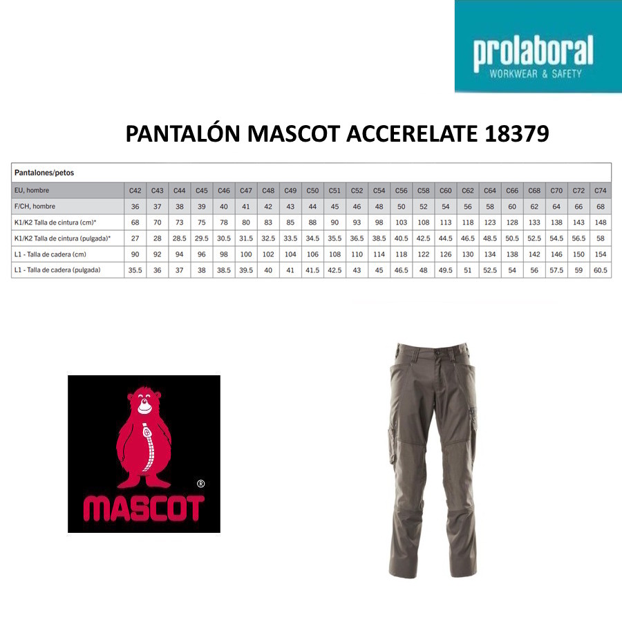 • Los productos de Mascot utilizan un sistema de tallas propio que se expresan con códigos como C42, C50, C58.