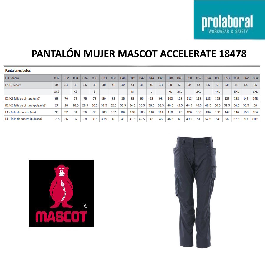 Para facilitar la elección, en Prolaboral mostramos las equivalencias aproximadas al tallaje español sugerida, manteniendo entre paréntesis la talla original Mascot.