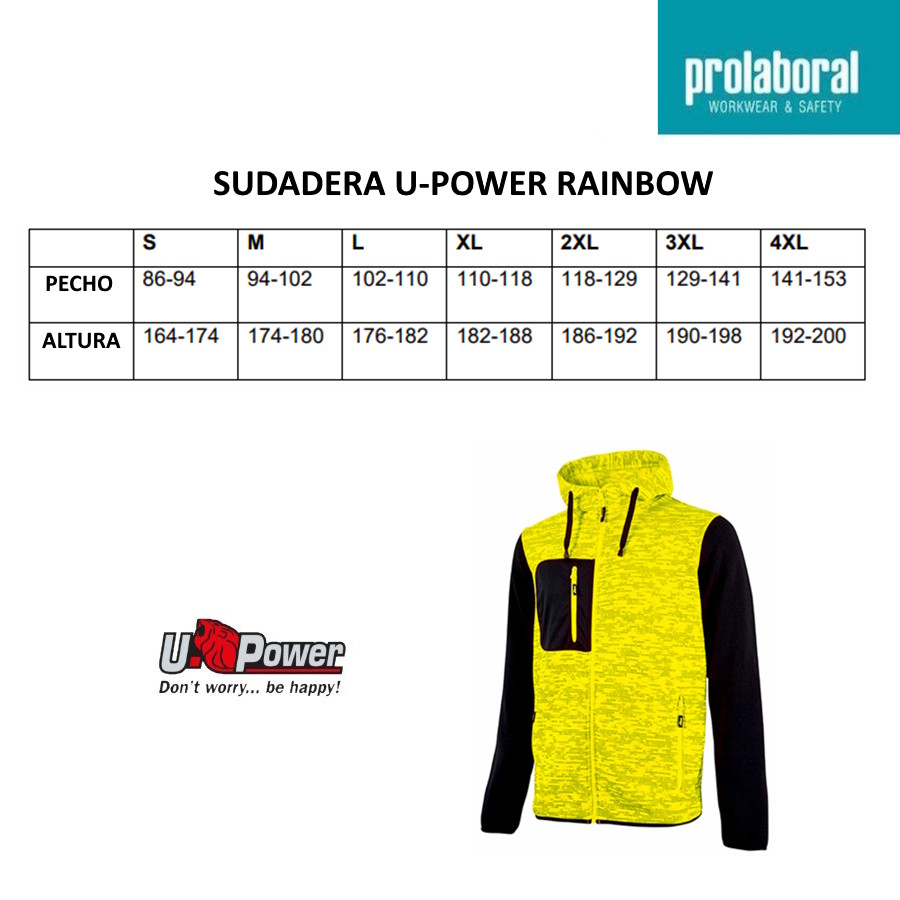 La sudadera U-Power Rainbow está compuesta en su totalidad por poliéster, con un peso de 310 gr/m².