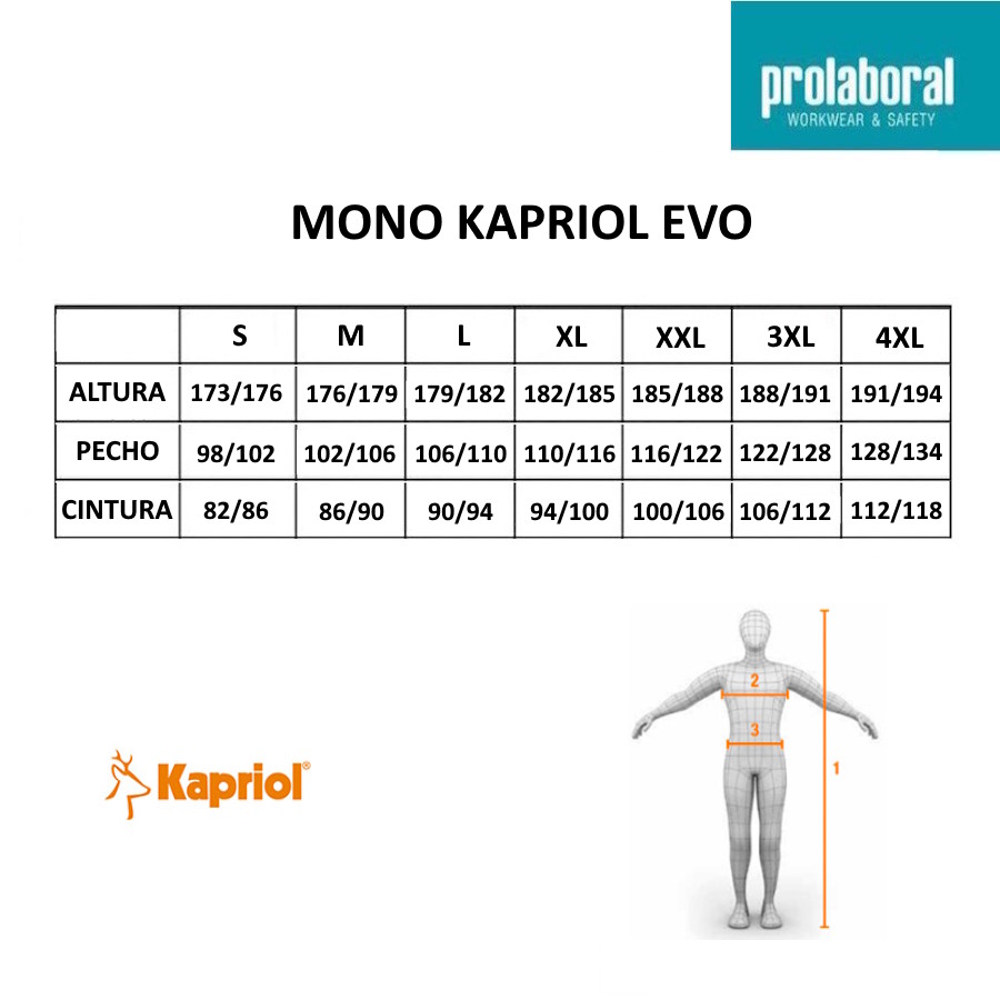 El mono Kapriol Evo es una prenda de trabajo diseñada para proporcionar comodidad y funcionalidad en entornos laborales exigentes. En la parte frontal, el mono cuenta con un bolsillo en el pecho derecho, equipado con una solapa y cierre de velcro para garantizar la seguridad de los objetos almacenados en su interior. Las pinzas extensibles con tachuelas de refuerzo añaden resistencia y durabilidad a esta área, asegurando la integridad del bolsillo incluso en condiciones de trabajo intenso.