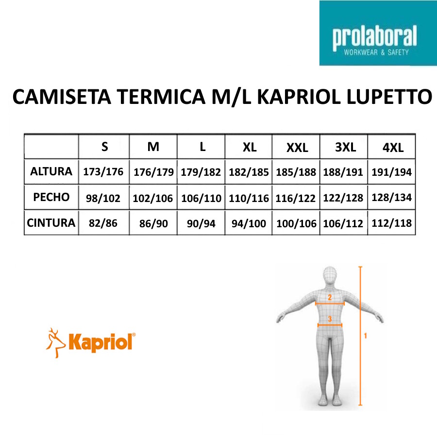 La camiseta térmica de manga larga Kapriol Lupetto es una prenda técnica de alto rendimiento diseñada para ofrecer el máximo confort en condiciones de trabajo exigentes o durante actividades al aire libre en climas fríos. Gracias a su tejido elástico y su diseño con formas envolventes, esta camiseta se adapta perfectamente a la anatomía del cuerpo, proporcionando una sensación de segunda piel que facilita todos los movimientos sin restricciones ni molestias. Su estructura sin costuras elimina los roces y puntos de presión, lo que se traduce en una experiencia de uso mucho más cómoda, incluso durante jornadas prolongadas.