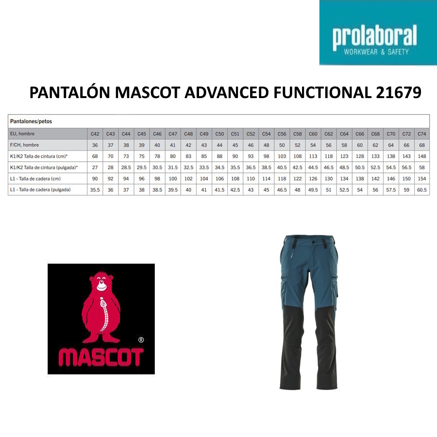 Para facilitar la elección, en Prolaboral mostramos las equivalencias aproximadas al tallaje español sugerida, manteniendo entre paréntesis la talla original Mascot.