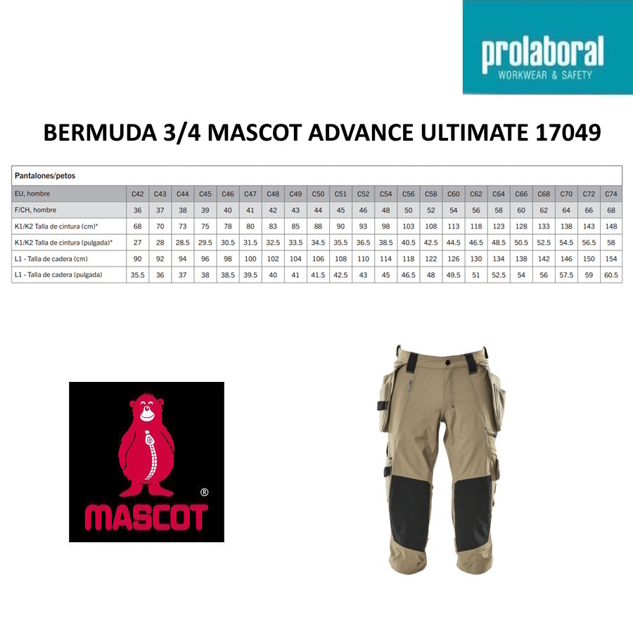Para facilitar la elección, en Prolaboral mostramos las equivalencias aproximadas al tallaje español sugerida, manteniendo entre paréntesis la talla original Mascot.