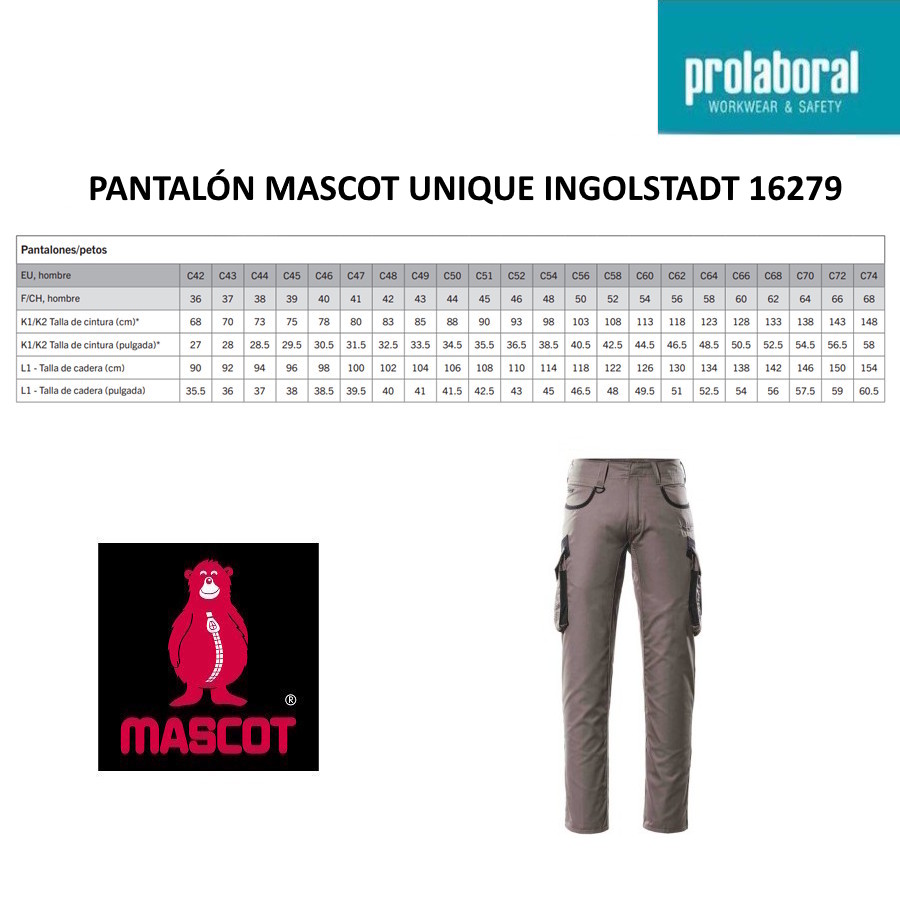 Para facilitar la elección, en Prolaboral mostramos las equivalencias aproximadas al tallaje español sugerida, manteniendo entre paréntesis la talla original Mascot.