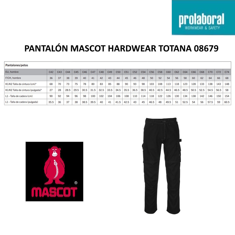 Para facilitar la elección, en Prolaboral mostramos las equivalencias aproximadas al tallaje español sugerida, manteniendo entre paréntesis la talla original Mascot.