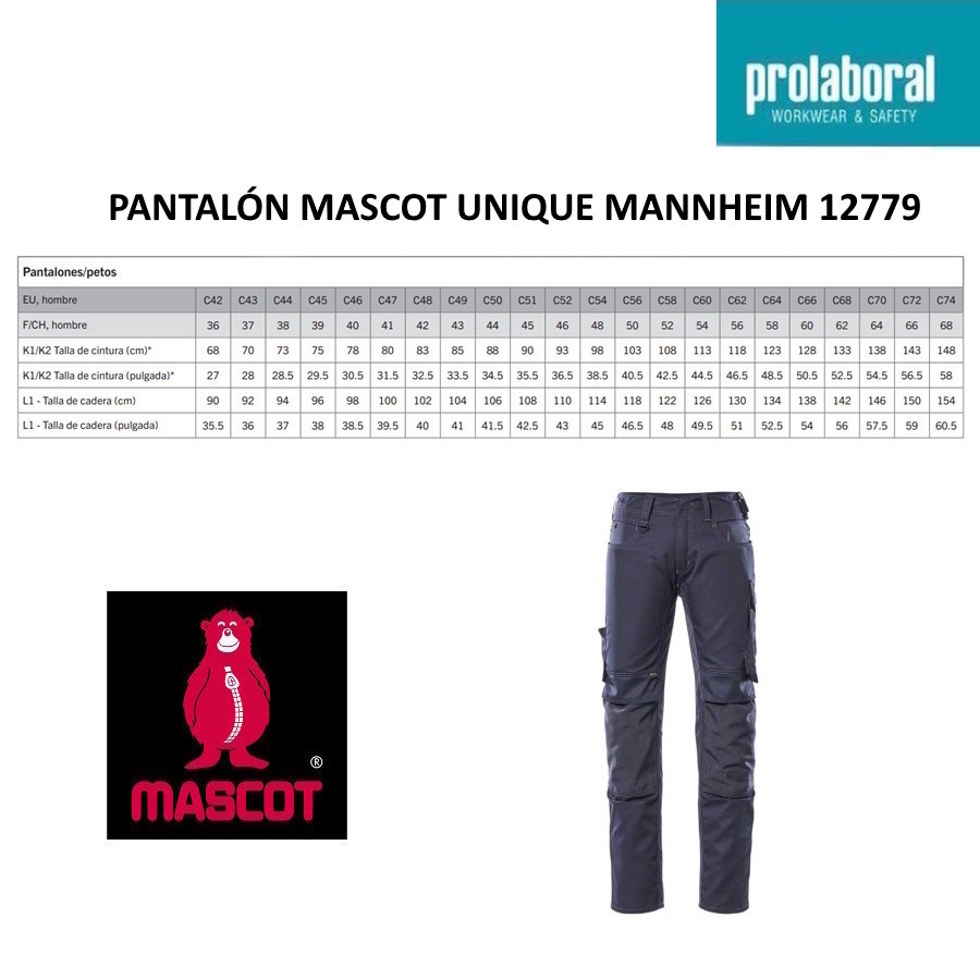 Para facilitar la elección, en Prolaboral mostramos las equivalencias aproximadas al tallaje español sugerida, manteniendo entre paréntesis la talla original Mascot.