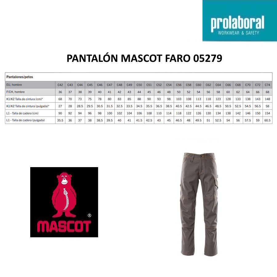 Para facilitar la elección, en Prolaboral mostramos las equivalencias aproximadas al tallaje español sugerida, manteniendo entre paréntesis la talla original Mascot.
