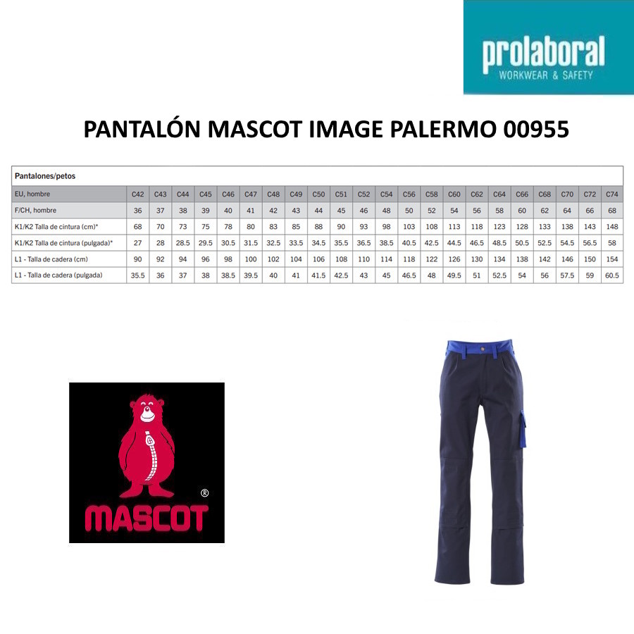 Para facilitar la elección, en Prolaboral mostramos las equivalencias aproximadas al tallaje español sugerida, manteniendo entre paréntesis la talla original Mascot.
