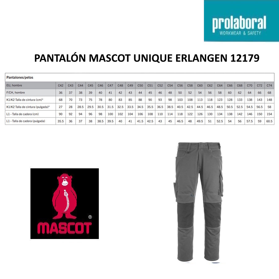• Los productos de Mascot utilizan un sistema de tallas propio que se expresan con códigos como C42, C50, C58.