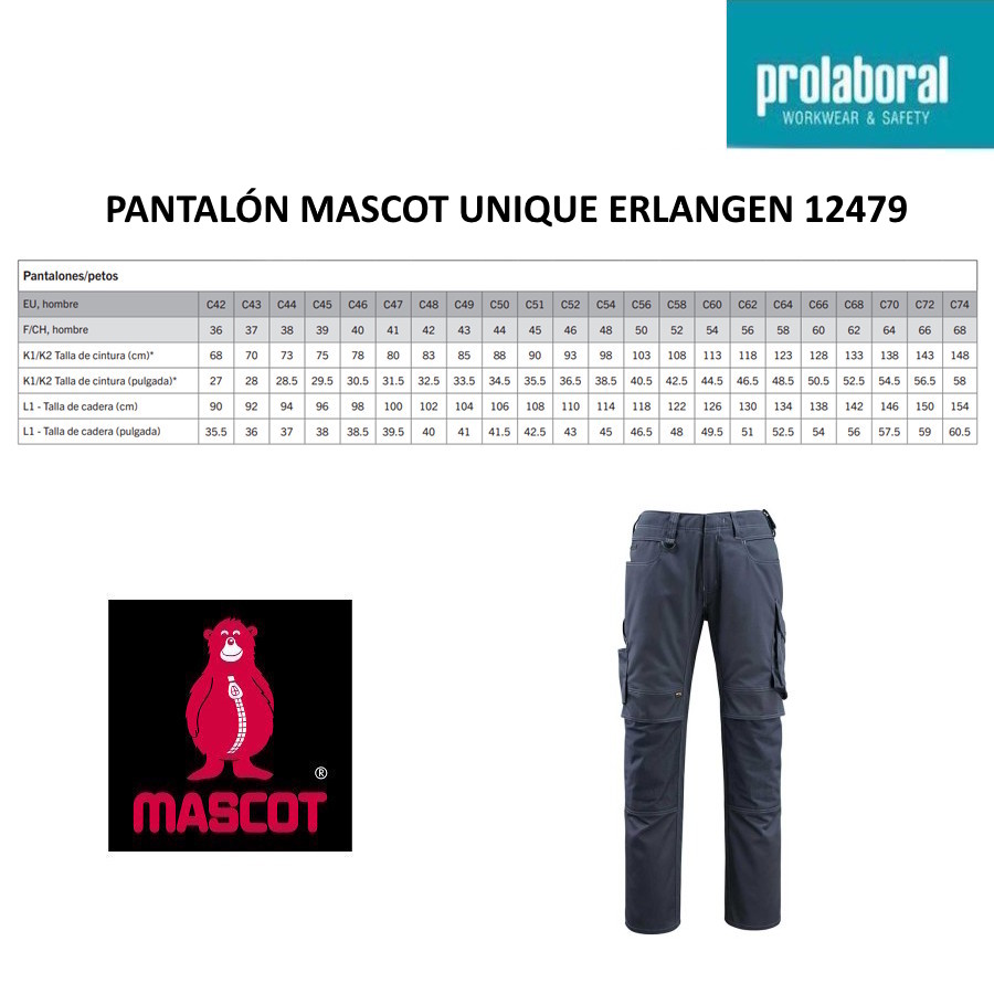 Para facilitar la elección, en Prolaboral mostramos las equivalencias aproximadas al tallaje español sugerida, manteniendo entre paréntesis la talla original Mascot.