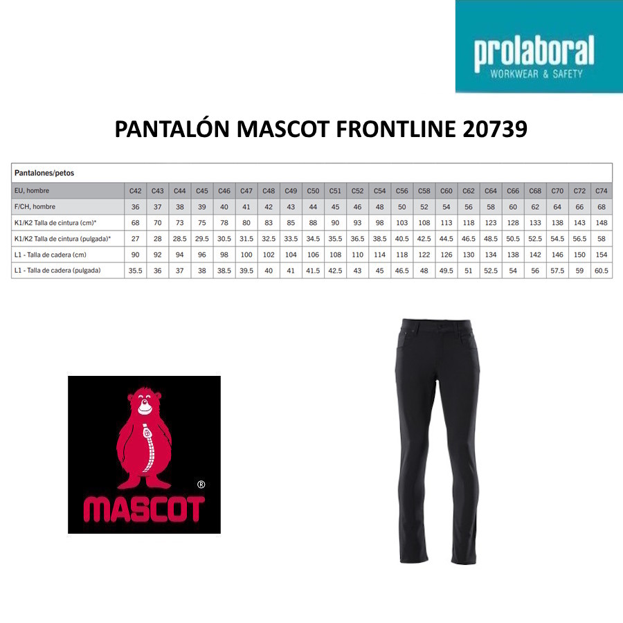 Para facilitar la elección, en Prolaboral mostramos las equivalencias aproximadas al tallaje español sugerida, manteniendo entre paréntesis la talla original Mascot.