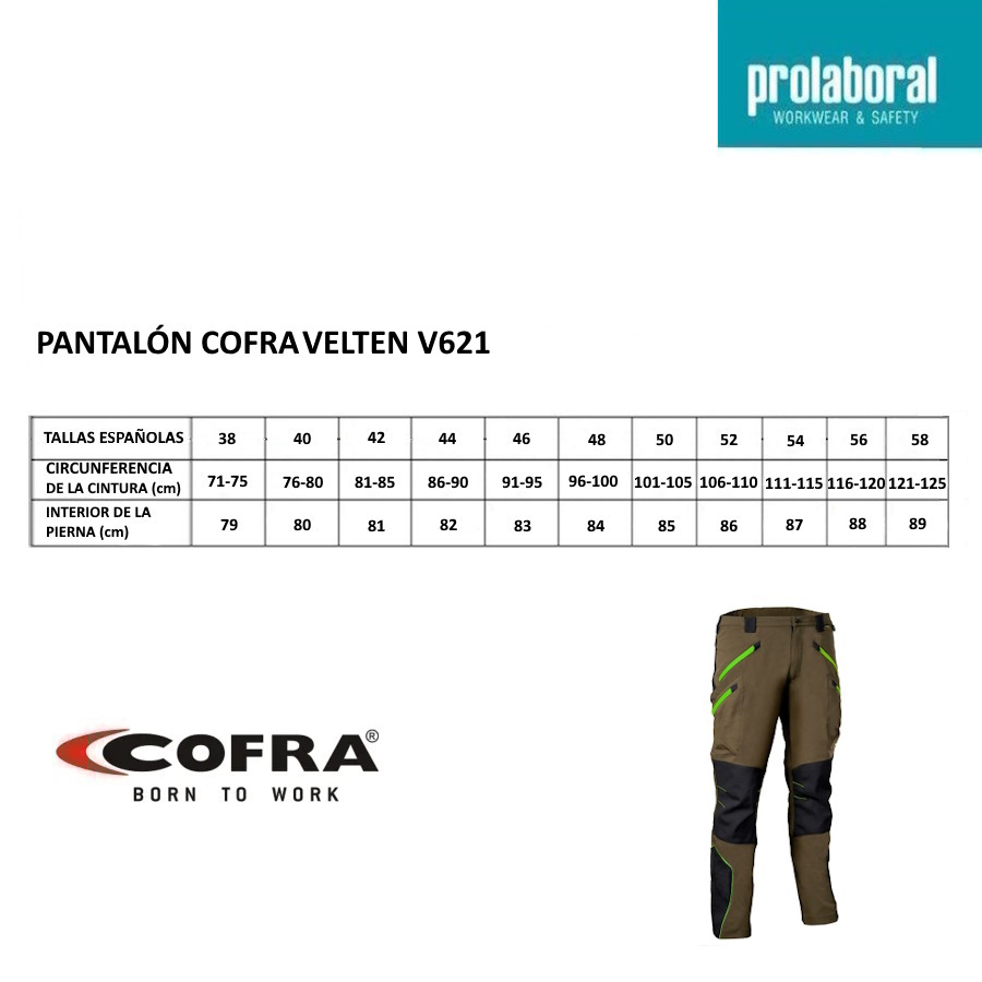 El pantalón Cofra Velten V621 se encarga de ofrecer la máxima comodidad, resistencia y funcionalidad en entornos laborales exigentes. Se adapta a las exigencias del día a día gracias a un diseño ergonómico que incorpora un corte especialmente desarrollado para mejorar la movilidad de las piernas y rodillas, y una cintura elástica con parte trasera en relieve que asegura un ajuste óptimo incluso en posiciones de flexión o trabajo agachado. Cada detalle ha sido pensado para maximizar la funcionalidad, como demuestra la inclusión de seis bolsillos, todos ellos con cierre de cremallera, que permiten guardar herramientas o pertenencias personales con total seguridad: dos bolsillos frontales de gran capacidad, dos laterales y dos traseros.