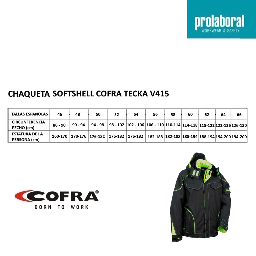 - SOFTSHELL 100% poliéster + membrana COFRA-TEX + polar 100% poliéster.