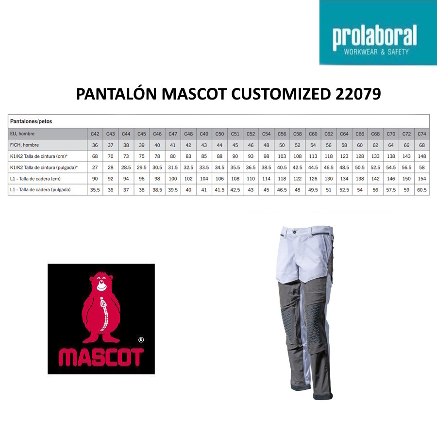 • Los productos de Mascot utilizan un sistema de tallas propio que se expresan con códigos como C42, C50, C58.