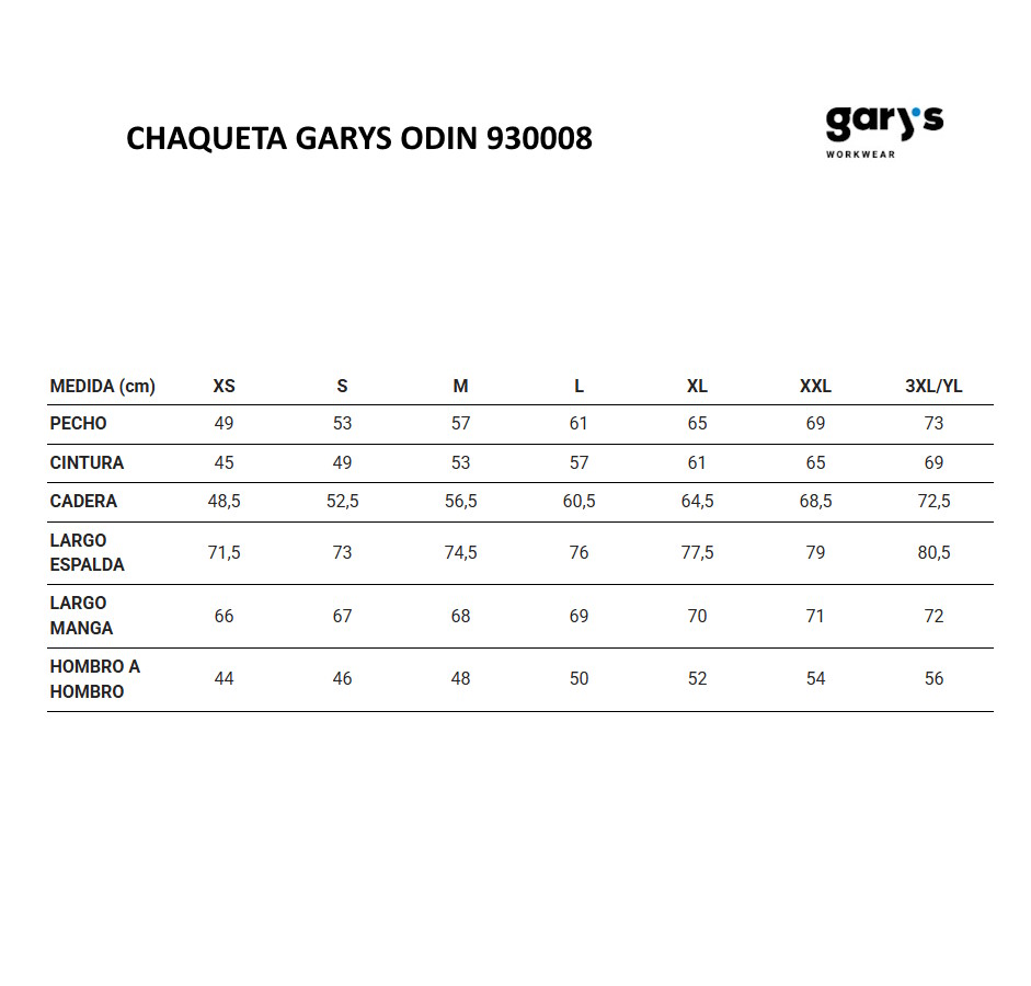 - Talla: XS, S, M, L, XL, XXL, 3XL.
